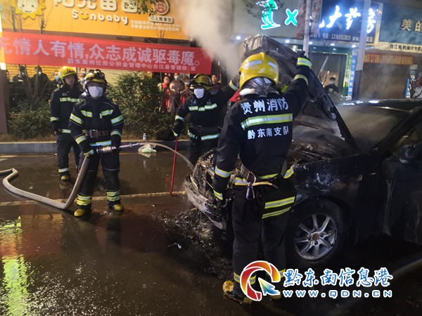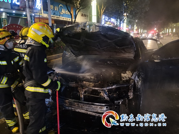 消防員到達現場時,停靠在路旁的小轎車車頭被火焰包圍,滾滾黑煙彌漫路面,給來往的車輛及行人帶來嚴重威脅。根據現場情況,消防員立即鋪設水帶對小轎車起火部位進行撲救,控制火勢不向油箱進行蔓延,同時對油箱進行冷卻,預防油箱爆炸帶來嚴重的次生事故。經過消防員10分鐘的奮力撲救,險情得到徹底排除。大火過后,小轎車面目全非,車頭只剩下一副骨架。
