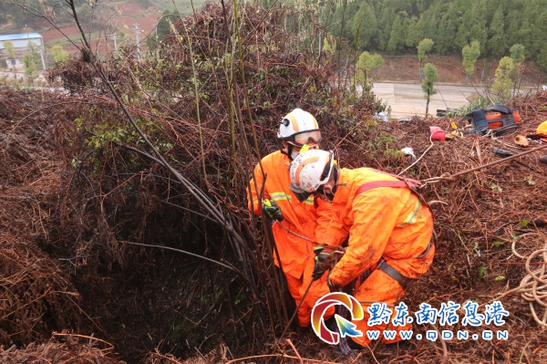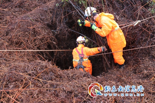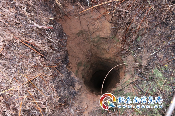 接到報警后,臺江縣消防救援大隊立即趕往現場救援。16時40分,消防救援人員到達現場后,通過現場詢問查看得知,該洞穴周邊長滿雜草,視野所見僅一個直徑約1.5米深不見底的洞穴,內部情況不明,“下面有沒有人,下面有沒有人”救援人員對著洞口大聲的喊道。