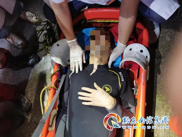 29日20時(shí)20分,搜救小組幾經(jīng)輾轉(zhuǎn)終于在山林一瀑布底發(fā)現(xiàn)了從瀑布上跌落摔傷的被困人員,其肋骨受傷,意識(shí)清醒,但身體已無法動(dòng)彈。經(jīng)現(xiàn)場(chǎng)了解得知,被困人員一行5人到戶外進(jìn)行徒步穿越和瀑降活動(dòng),瀑布高約80米,被困人員在瀑布上降落到離地面約15米距離時(shí)不慎跌落導(dǎo)致摔傷。得知情況后救援人員一邊對(duì)被困人員進(jìn)行安撫,一邊利用擔(dān)架將被困人員抬下山。由于夜間,又加上山高路險(xiǎn),路程很遠(yuǎn),救援隊(duì)員體力消耗巨大,救援異常艱難,救援隊(duì)員邊走邊停。但在救援的過程中,被困人員卻出現(xiàn)了輕生的情緒。
