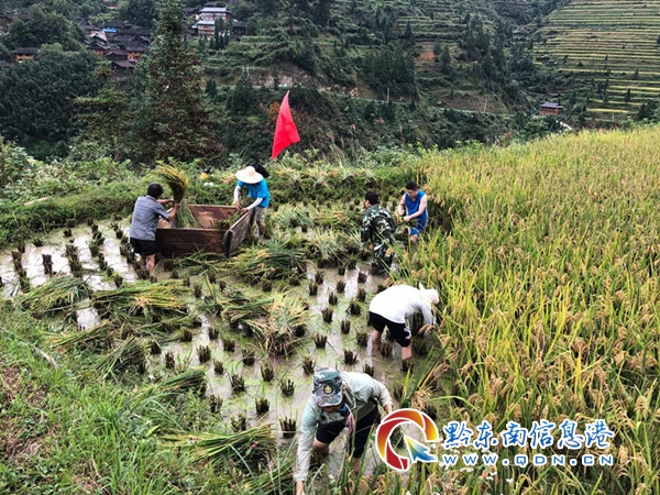災情就是命令,臺江縣干部群眾積極行動,第一時間收集稻谷搶收的氣象信息、雨情水情,及時發布轉載轉發,確保讓全縣老百姓都能掌握權威信息,盡量挽回稻谷減產減收損失。又考慮到農村留守老人、留守兒童多,青壯年大多外出務工,家里缺乏勞動力搶收稻谷的情況,針對性為有困難的群眾進行上門服務,幫助農民搶收稻谷。