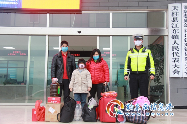 2月6日一早,羅先生一家便扛著行李徒步向老家出發了,剛走到縣城朗江路路口,執勤的交警就叫住了他們,詢問他們的情況。原來,羅先生一家是在1月27日就去到福建了,到達福建的當天,因為疫情的形勢嚴峻,原先的用人企業沒有開始上班,并勸離了他們,出租屋的房東也不再收留他們,所以他們就在當地的賓館暫住了幾天,但后來當地疫情呈上升趨勢,各個行業相繼停業,無奈之下他們只得返回天柱,到了天柱找不到吃住的地方,饑寒交迫的一家三口在車站過了一夜后,又發現沒有車回家,便決定步行回去,他們家遠在30公里外的白市鎮白市村,當時還下著雨,3人連一口飯都還沒吃。
