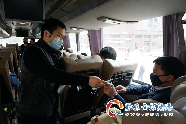 “針對(duì)目前復(fù)工就業(yè)難,我局結(jié)合實(shí)際和出行需求,制定方案、細(xì)化明確疫情防控、運(yùn)行線路和安全運(yùn)行等措施,不定期做好人員輸送工作。為保證返崗工人的人身安全,將客座率嚴(yán)格控制在核定人數(shù)的50%以下,并每人為他們發(fā)放一次性醫(yī)用口罩,避免人員聚集,交叉感染。縣就業(yè)局副局長(zhǎng)陳光鋒一邊發(fā)放口罩一邊嚴(yán)肅地說道。