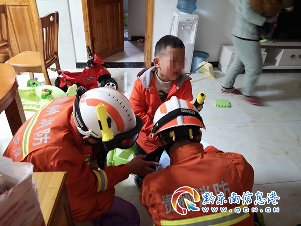 因孩子手指插到板凳中間孔洞,板凳材質(zhì)較硬,經(jīng)過嘗試破拆器材無法較好的發(fā)揮作用,為避免給孩子造成二次傷害,消防指戰(zhàn)員利用肥皂水潤滑小男孩的手指,一邊鼓勵(lì)安撫小男孩的情緒,一邊緩慢的從板凳縫隙中褪出小男孩的手指。經(jīng)過3分鐘的巧妙救助,消防指戰(zhàn)員成功將小男孩的手指取出。(李永強(qiáng))