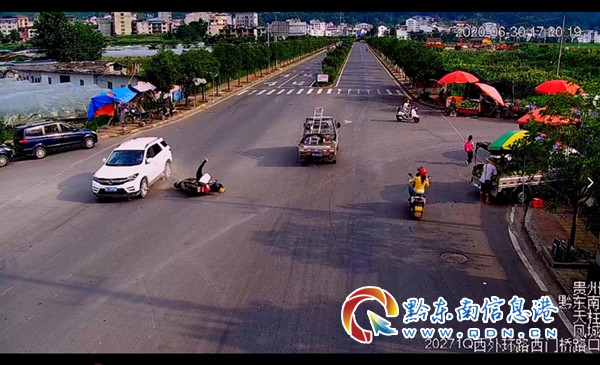 6月30日下午,龍女士騎著電動車行駛在回家的路上,在剛駛入外環路的西門橋路口時,左側道路上飛快的駛來一輛白色越野車將其撞翻在地。從現場實時監控畫面來看,龍女士被撞翻落地的瞬間是頭部先著地的,她頭上的安全頭盔很好的抵擋住了頭部要害部位所承受的傷害,僅造成了腿部受傷,生命安全得到了保障。