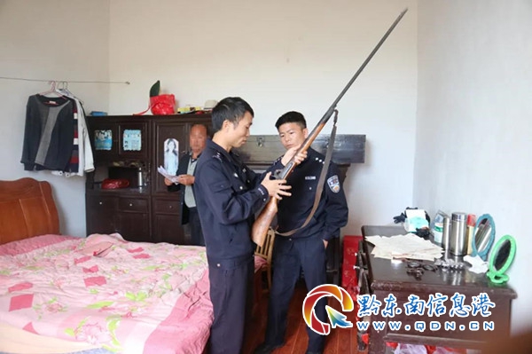 10月16日至19日期間,天柱縣公安局白市派出所、江東派出所在白市鎮、江東鎮開展聯合緝槍治爆集中整治,在白市鎮白市村周某家中收繳火藥槍1支,小溪溝董某家中收繳非法改裝氣釘槍1支,中寨村楊某家中收繳火藥槍1支,隨即派出所民警將周某、董某、楊某等三人依法傳喚至派出所開展調查。