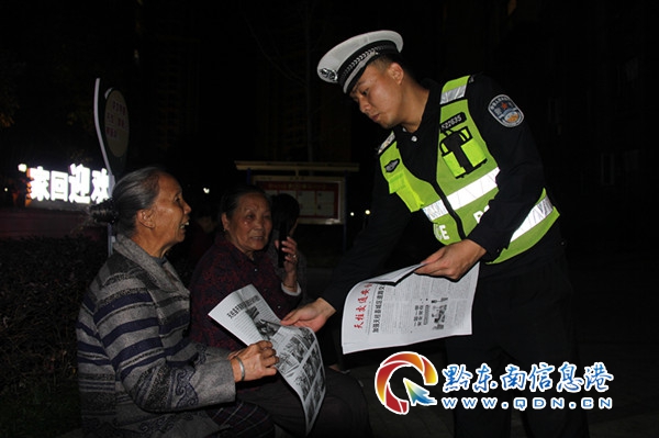 11月18日晚,該大隊宣傳民警走進天澤郡小區開展宣傳活動。活動中,民警與群眾現場交流,在輕松愉悅的氛圍中講授交安知識,分析交通安全形勢,現場解答群眾提出的各類交通問題,而后通過播放交通安全警示教育片的方式讓他們提升交通安全防范意識,以案說法講解如何預防道路交通事故。