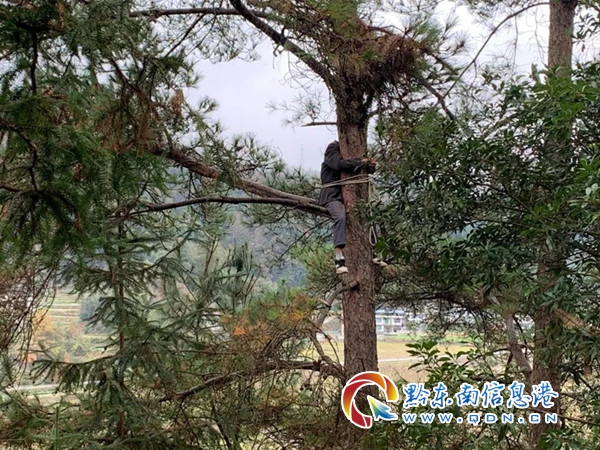 當天早上,卜頭寨一男子因怕降溫落雪壓垮樹枝砸到自家房屋,于是爬到樹上修伐樹枝,怎料爬上去之后恐高,之前斷過血管的雙腿雙手又使不上力,加之下著下雨,天氣寒冷,實在下不來了樹,前后被困樹上近2個多小時,無奈之下只能撥打119報警電話請求幫助。
