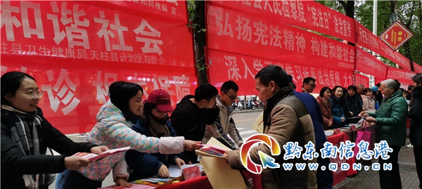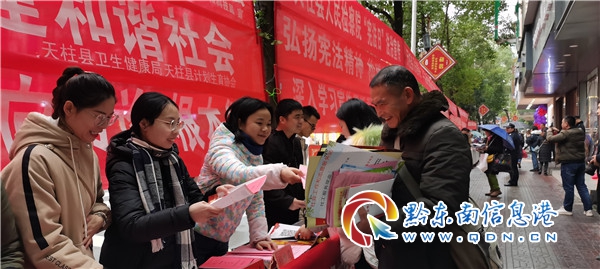 天柱縣委辦(縣檔案局)、縣檔案館、縣司法局、縣法院、縣檢察院、縣公安局、縣財政局、縣退役軍人事務局等多家單位集中在中心商業街開展12.4國家憲法日宣傳活動。