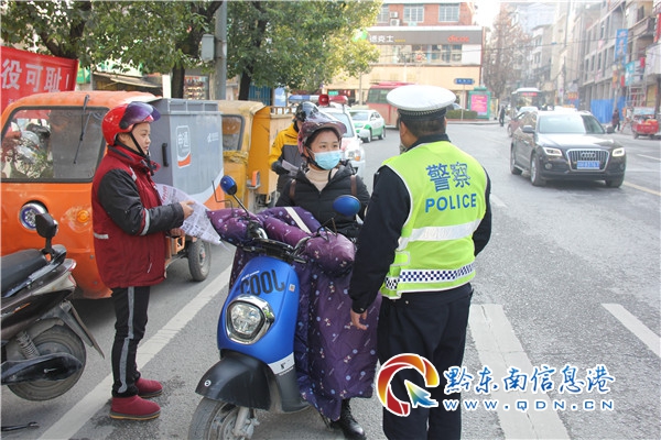 活動中,民警通過發放交通安全宣傳資料,面對面講解交通安全知識,以典型案例開展警示教育等方式為過往駕駛員和行人宣傳交通安全知識,呼吁他們提高安全防范意識,知危險會避險。快遞小哥則結合自己工作和生活中的騎行經驗,用通俗易懂地語言向過往摩托車、三輪車駕駛員講解騎行車輛時安全頭盔的重要性,勸導駕駛員們不要出現闖紅燈、隨意調頭、亂穿亂行等違法行為,做到時刻遵守交通法律法規,安全文明出行。