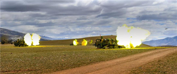 同時,各聯合戰斗群做好了發起沖擊前的最后準備,各攻擊力量在坦克火力的掩護下,快速向“敵”發起進攻,方圓幾十公里內,遠程火炮和各種車載武器,構成了遠近一體的聯合火力打擊體系,對頑抗之“敵”展開最后清剿。此次演習,共設置各類靶標1000余個,全面檢驗了各類型火力的打擊效能和部隊在高海拔地區的突擊能力。
