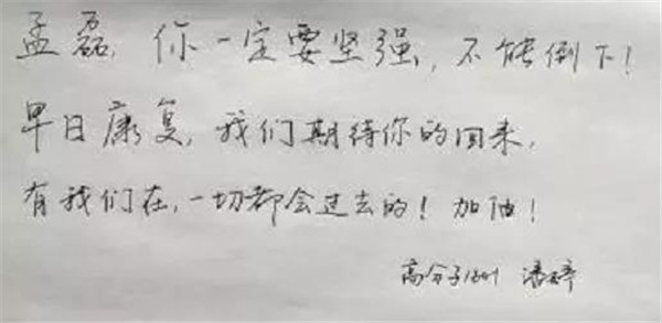 “自己要加油趕緊好起來,快點回到學校。”這是孟磊發布在朋友圈的勉勵。其實,生病期間,孟磊最想念的是學習生活了三年多的學校。