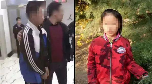 左:行兇男孩蔡某某被帶回公安機關 右:被害女孩琪琪