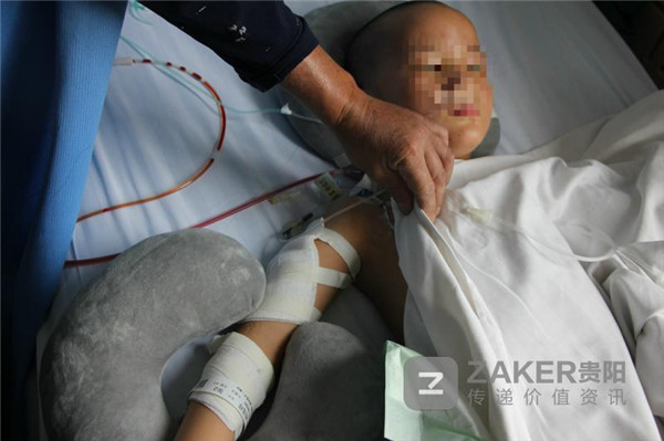 5 月 12 日,在遵醫附院第一住院部,剛從 ICU 轉入普通病房的小逸(化名),躺在病床上,眼神中仍有一絲恐懼。女童一旦喊痛,她的爸爸、姑姑就急忙跑到床前,給她輕揉腿腳。
