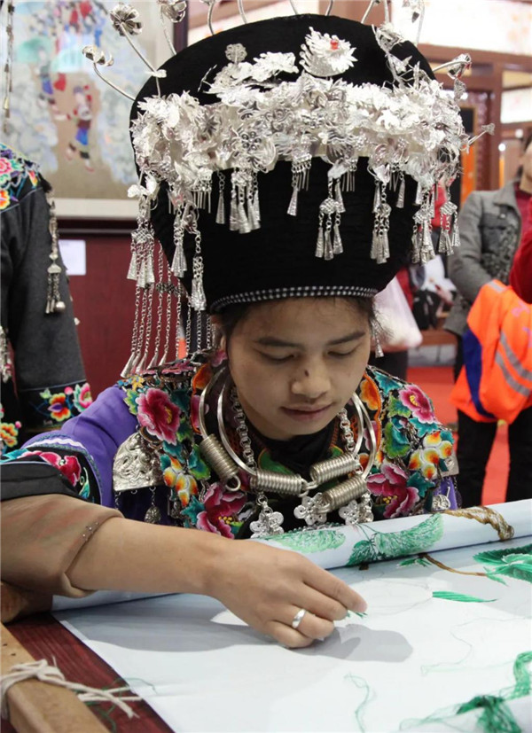 我從 2000 年開始,用 8 年的時間突破了 3 萬多里路,記錄了苗繡的歷史,收集苗繡資料。我作為松桃苗繡的第 7 代傳承人,怎么把苗繡技藝發展好,傳承好、運用好,我一直在思考。