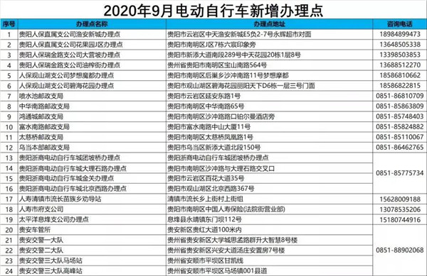 貴陽(yáng)市新增24個(gè)電動(dòng)自行車上牌便民網(wǎng)點(diǎn)