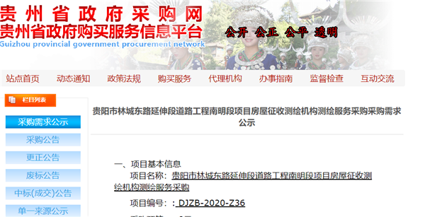 8月14日,貴州省政府采購網發布了貴陽市林城東路延伸段道路工程南明段項目房屋征收測繪機構測繪服務采購采購需求公示,該項目的測繪即將開始。
