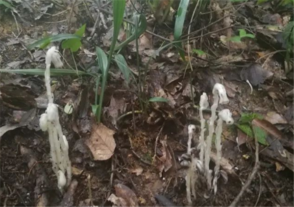 經當地林業部門鑒定,這種形似蘑菇的植物學名叫水晶蘭,是稀少野生觀賞花卉種質資源,常分布于天然植被、保存完好、冷涼潮濕、多腐殖質的特殊生境,對生長環境要求極高,而合興鎮中寨村下竹園組的一片叫“官林”內的森林植被豐富、生態良好,為水晶蘭的生長提供了良好的環境。