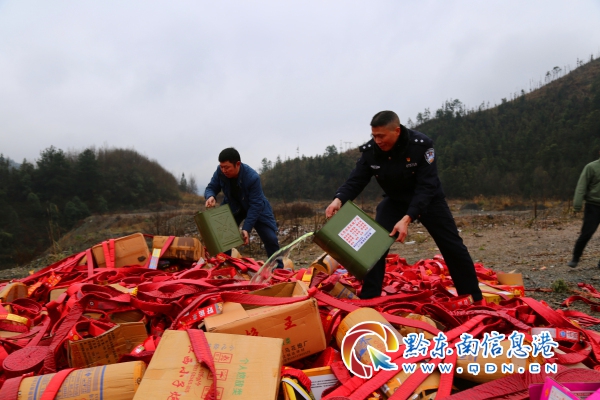 據了解,由于此次銷毀的非法煙花爆竹數量較大、種類較多,為確保銷毀過程絕對安全,鎮遠縣公安局制定了銷毀方案,從裝車、運輸到現場銷毀,全程安排警力進行護送和監管,并邀請相關部門的有關負責人到現場進行監督及指導。銷毀工作歷時6個多小時,在銷毀工作結束后,工作人員對銷毀現場又進行檢查和處理,確保銷毀現場不留任何安全隱患。(龍冠宇)
