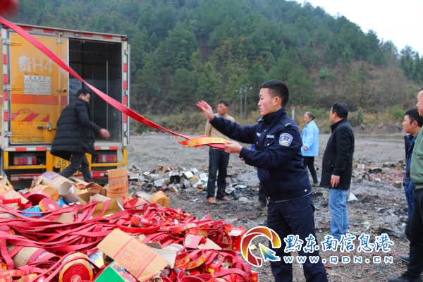 鎮遠縣公安局治安大隊長龍躍華現場介紹,2019年11月下旬以來,鎮遠縣公安局與鎮遠縣應急管理局成立“煙花爆竹打非治違專項整治工作小組”,出動人力300余人次,檢查火紙店、超市商場、小賣部等重點部位和場所220余家,發現并及時消除涉煙花爆竹安全隱患48處,查扣沒收非法煙花爆竹1882箱(件),重量近12噸,依法行政拘留違法人員3名,全力打擊了非法銷售、儲存、運輸煙花爆竹的違法行為。