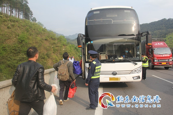 經(jīng)詢問(wèn)得知,客車是從凱里開(kāi)往廣東輸送務(wù)工人員,車輛共載有人員46名,該車行駛至思劍高速路段時(shí)發(fā)現(xiàn)故障無(wú)法繼續(xù)行駛,駛員已經(jīng)聯(lián)系公司備用車輛趕來(lái)現(xiàn)場(chǎng)轉(zhuǎn)移務(wù)工人員。