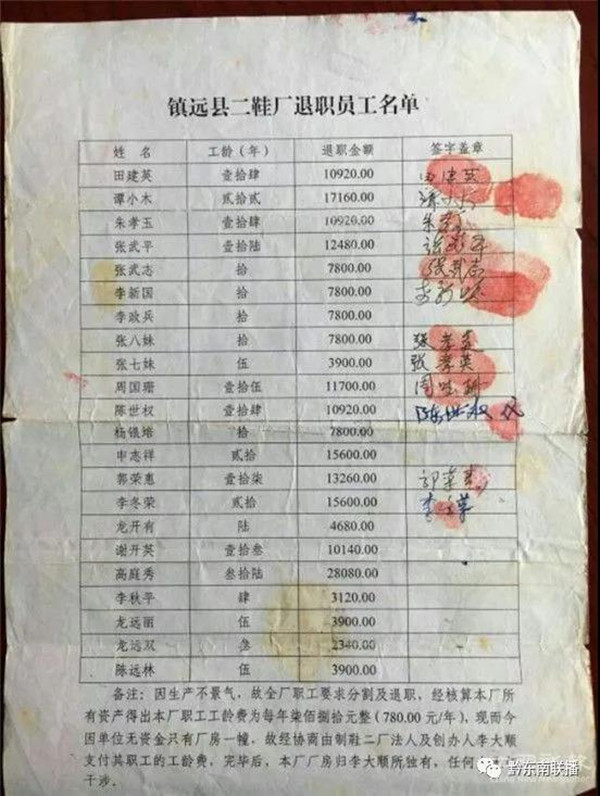 而且,雙方還在一張職工簽字的表冊下方作了一個說明,表明的意思是,李大順支付了這些職工退職費(也就是買斷工齡的費用)之后,第二制鞋廠的廠房及其附屬設施歸李大順所有。