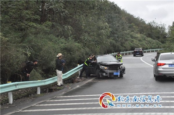 本網訊  2020年10月4日 14:19:10接到來電稱S25沿榕高速思劍段K252+000鎮遠南匝道(凱里往鎮遠方向)有一小車撞護欄,接完電話,路政員立即趕往現場。