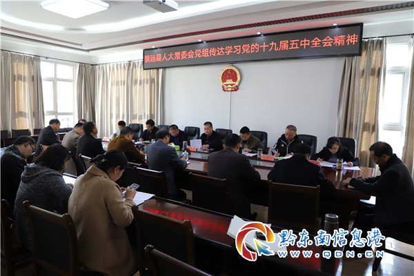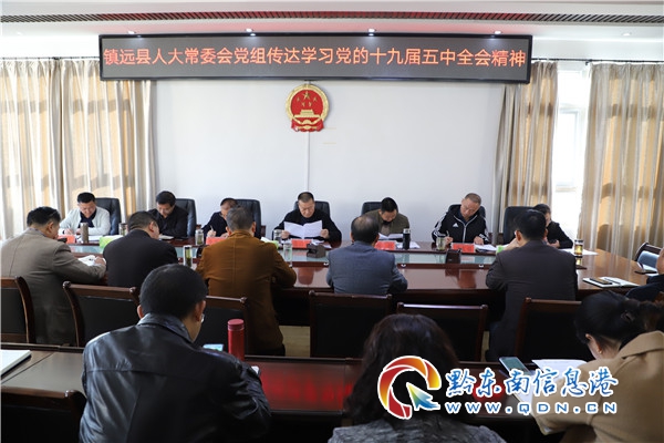 鎮遠縣人大常委會黨組召開(擴大)會議,傳達學習貫徹黨的十九屆五中全會精神。縣人大常委會黨組書記、主任張以光主持會議并講話。縣人大常委會黨組副書記、副主任楊錦,縣人大常委會黨組成員、副主任蔣友錫、鐘遠祥、盧曉清、肖成憲,縣人大常委會黨組成員、辦公室主任何洪倫參加會議。