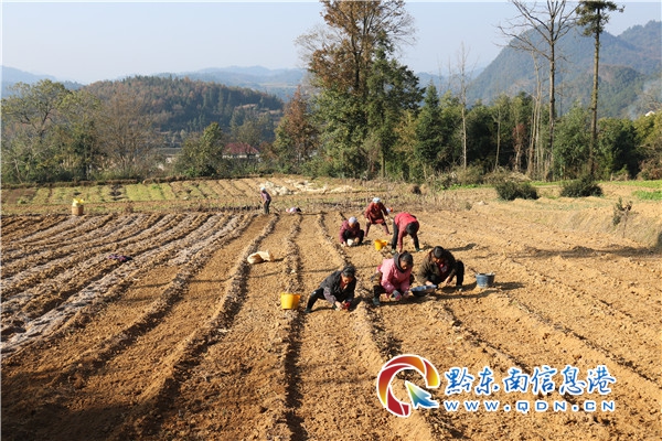 11月15日,筆者隨著蜿蜒的山路,到達尚寨土家族鄉尚寨村,太子參種植戶們忙碌的身影呈現于眼前,整地、施肥、撒種、蓋土...他們在嘮家常的同時不忘手中的活,分工有序的進行著新一輪勞作。