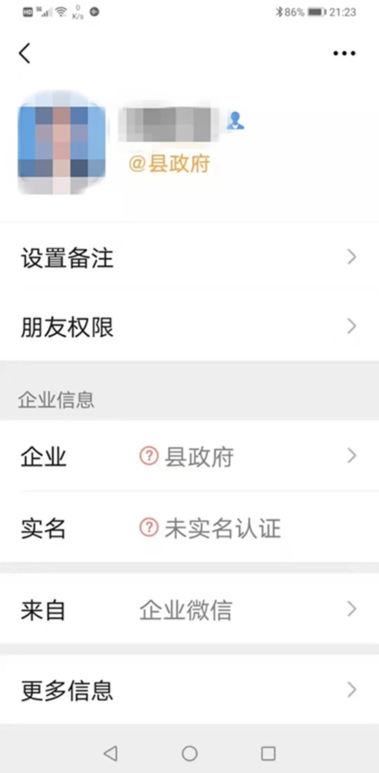 以下圖片為詐騙嫌疑人冒充縣領導微信截圖: