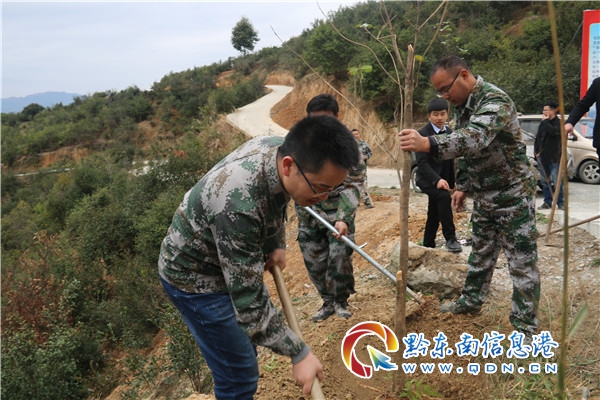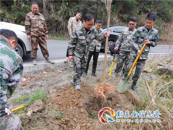 本網訊 一年之計在于春,植樹造林正當時。2月18日,春節后上班第一天,從江縣慶云鎮黨委政府組織全體干部職工70余人參加義務植樹活動,掀起了植樹造林熱潮。