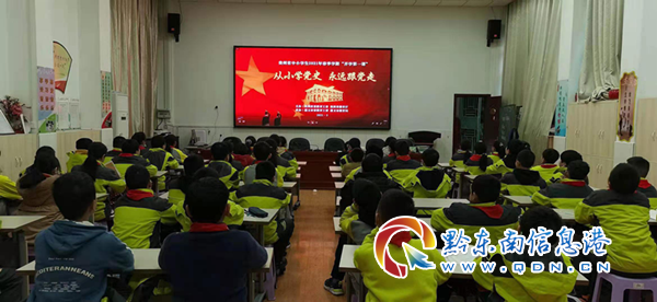 會后,各班到教室觀看貴州省中小學生2021年春季學期“開學第一課——從小學黨史永遠跟黨走以及安全教育”主題班會活動。(石文崗)