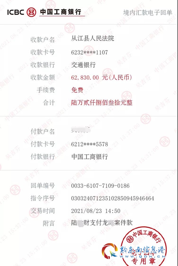 本網訊 2021年8月23日,貴州從江法院執行干警利用侗族新米節期間被執行人回家過節之際,利劍出擊,順利執結一案,執行到位6.2萬元。