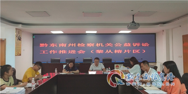 本網訊 9月14日,黔東南州檢察機關公益訴訟推進會(黎從榕片區)在從江縣人民檢察院召開,會議由黔東南州人民檢察院第七檢察部主任郭付明同志主持。從江、黎平、榕江三縣檢察院負責公益訴訟的干警參加了此次會議。