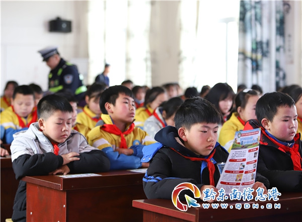 本網訊 3月2日,貴州省黔東南苗族侗族自治州丹寨縣交警大隊宣傳民警走進轄區金鐘第一小學開展“開學第一課”交通安全宣傳活動。