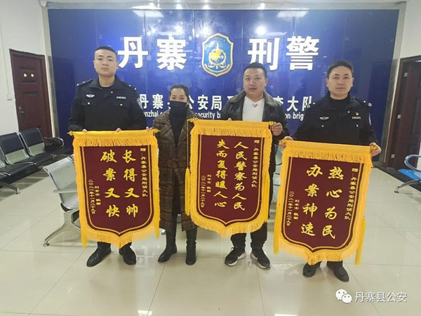 11月29日,一女子提著“長得又帥,破案又快”“人民警察為人民,失而復(fù)得暖人心”“熱心為民,辦案神速”的三面錦旗送到丹寨縣公安局刑事偵查大隊,看到這一幕辦案民警都暖化了心。“從警9年,我辦過的案件不少獲得群眾贈送錦旗,但同一個案件同一個受害人一次連贈三面錦旗的今天我第一次經(jīng)歷”這是貴州省黔東南州丹寨縣公安局刑事偵查大隊民警蘭青青接過群眾送來的錦旗時說的一句肺腑之言。