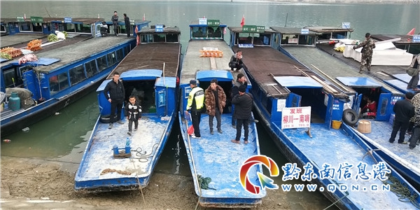 劍河縣交通運輸綜合行政執法人員在柳川碼頭對船舶和乘客檢查
