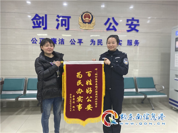 在便民服務上,劍河縣公安局一方面提供預約、電話咨詢、延時服務,打通服務“堵點”,提升窗口單位服務質量和效率。另一方面,大力推進戶政窗口便民服務措施,堅持做好“上門辦”服務,除為因年老、重病等原因不能抵達現場的群眾提供上門辦理外,還主動為轄區內需辦理戶籍業務的群眾提供郵寄辦理送證服務,不斷加強和改進服務工作方法,深化窗口服務措施,延伸服務渠道。至今,劍河縣公安局政務中心服務窗口為民提供預約 9 人次,延時辦理37 人次,上門服務1 人次,電話詢問230 人次,郵寄代辦3 人次,為民免費自動拍照辦證501人次。4月13日,群眾向劍河縣公安局戶籍民警送上錦旗表達謝意。