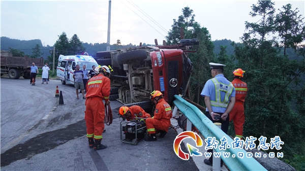 本網訊 8月10日18時23分,劍河縣消防救援大隊接到110轉警稱:劍河縣柳川鎮關口村,一輛貨車發生側翻有駕駛員被困車里,情況緊急,需要消防指戰員幫忙救助。