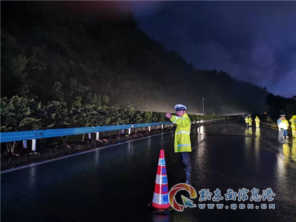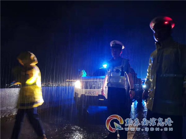 本網訊 9月6日20時43分,黔東南州氣象臺發布暴雨黃色預警信號,黔東南州公安局交警支隊高速四大隊轄區劍河縣革東鎮境內強降雨如期而至,大隊帶班領導劉浪副大隊長隨即派出民警吳明、彭茂盛帶領輔警瞿裕錕、李昌鑫上路加強路面巡控工作,當巡邏至滬昆高速劍河往臺江方向1622公里+200米處時,發現應急車道和行車道嚴重積水,積水深度足有50公分左右,嚴重影響交通安全,民警到現場后就已經有輛小車開進積水區引發故障。不及時對積水路段進行交通管制引導過往車輛安全通行,不及時對積水點進行疏通,按照當時的降雨量也將會把超車道淹沒。