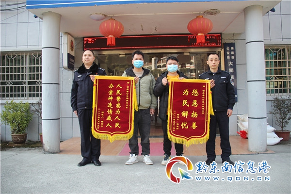 事后,為了感謝錦屏警方快速幫忙追回損失的21.4萬元,楊先生與堂哥給錦屏公安局大同派出所分別贈送了兩面印得有“人民警察為人民,辦案神速情感人”和“懲惡揚善,為民解憂”的警旗。