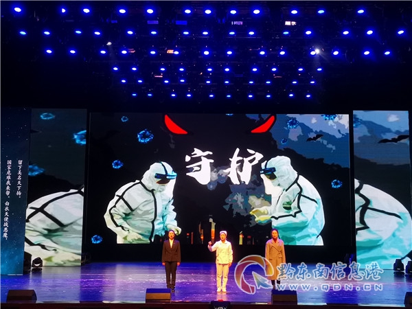 黔東南州錦屏縣文化館選送曲藝類作品方言故事《并蒂花開》,主要以2020年武漢爆發新冠肺炎疫情特殊時間節點為作品編創背景,講述一名普通群眾(女)與菜市場老板(女,新冠肺炎病毒無癥狀攜帶者)在短暫生意交談中不幸感染病毒,成為一名新冠肺炎病毒患者,在醫院接受治療過程中一度意志崩潰、頹廢自責,在積極樂觀、無私奉獻的“小護士”杜富家(女)的不斷感化中,逐漸走出人生陰霾、戰勝病毒、重獲新生的勵志故事,期間:作品引入的“家國情懷”(小護士杜富家、排雷英雄杜富國),更是成為表演過程中的經典感動篇章。