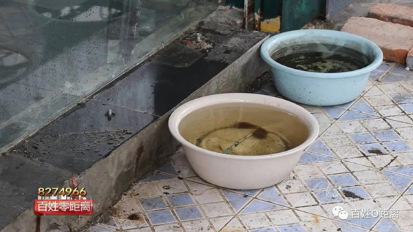 關女士:反正就是不間斷的,有的時候是下午5、6點,有的時候是中午就漏水,漏的水比較臭,是那種糞臭水,還是比較影響生意,大的時候就是那種堆積久了,一下子下來,沖擊力比較大,然后又開始滴那種剩下的水,就滴個3、4個小時,不間斷的。