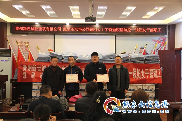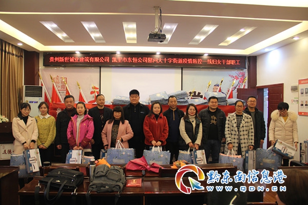 2021年3月8日,凱里市東恒公司、貴州新世誠業建筑有限公司到大十字街道慰問疫情防控一線婦女干部職工,向街道全體女干部職工致以節日的問候和誠摯的祝福,并送去慰問品。