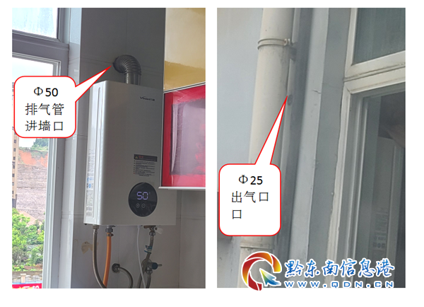 經現場監測核實,系該燃氣熱水器排廢氣管道沒有用廠家提供的管道進行規范安裝,只用一個彎頭通過外墻進行排氣,且排氣管進墻口為Φ50,可是出口只有Φ25,導致進口大出口小,排氣不暢,部分廢氣沿空心磚空洞流進廚房柜子溢出,造成2人中毒。所幸救治及時,兩人脫離了生命危險,否則后果不堪設想。