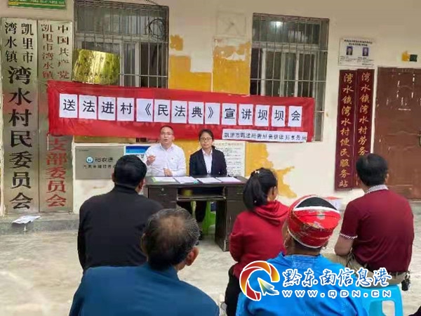 本網訊 4月23日,貴州貴信律師事務所李勇、潘帥芯律師到灣水村召開壩壩會進行《民法典》宣講,增強村民的法治意識,營造依法辦事、理性解決問題、化解矛盾靠法的良好法治環境,同時也為有需要的村民及時提供相關法律咨詢等服務。
