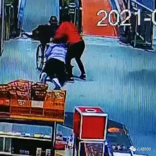 老人輪椅失控從電梯疾速滑下,千鈞一發之際,兩個身影沖上前去營救,用自己的身體當“剎車”使用,使得老人轉危為安,把一場悲劇扭轉。