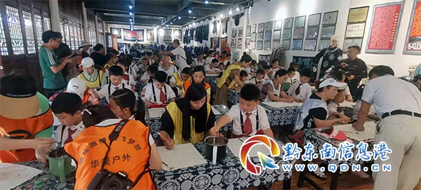 “蠟染是非物質(zhì)文化遺產(chǎn),它記載著我們少數(shù)民族的文化。”藍(lán)啟鳳開講,他告訴孩子們,蠟染是我們
