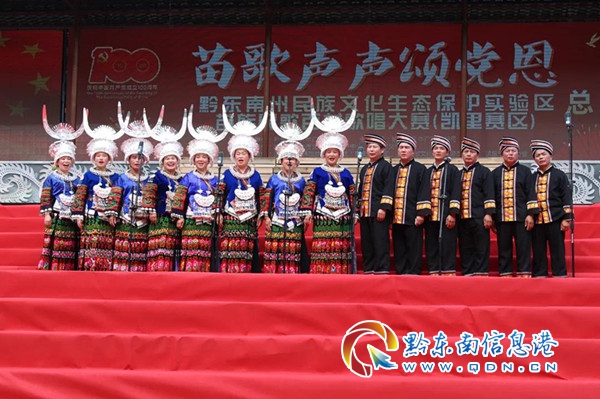 本網訊 2021年7月6日,主題為“苗歌聲聲頌黨恩”的黔東南州民族文化生態保護實驗區苗族民歌百村歌唱(凱里賽區)總決賽在凱里云谷小鎮非遺廣場隆重舉行。
