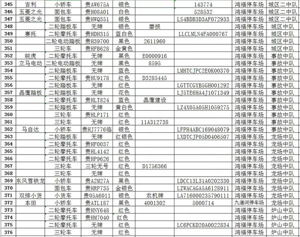 凱里市公安局交通警察大隊扣留車輛報廢清單