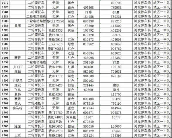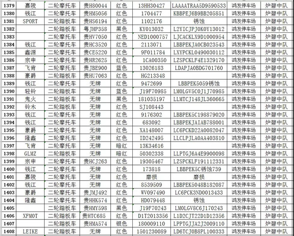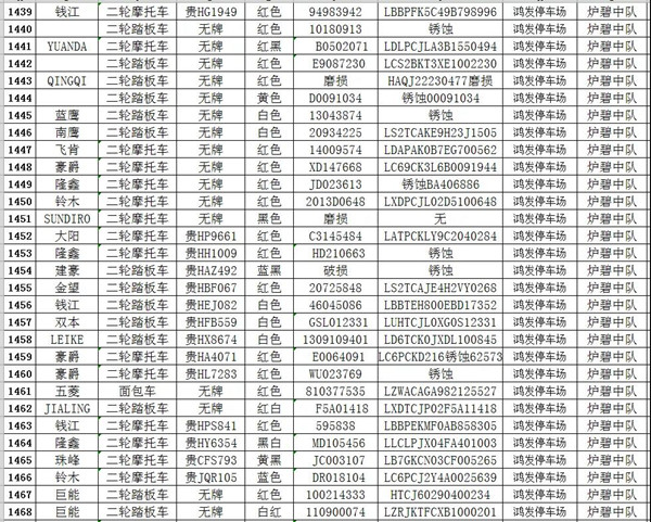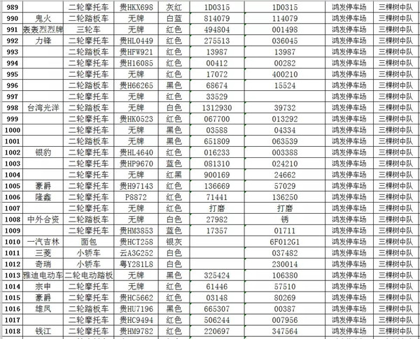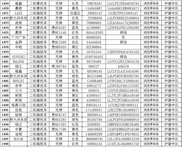 我大隊在日常道路交通管理工作中對涉案扣留的各類車輛共2121輛均已超過法定期限未按規(guī)定接受處理。根據(jù)《中華人民共和國道路交通安全法實施條例》第一百零七條規(guī)定:“依照道路交通安全法第九十二條、第九十五條、第九十六條、第九十八條的規(guī)定,被扣留的機(jī)動車,駕駛?cè)嘶蛩腥、管理?0日內(nèi)沒有提供被扣留機(jī)動車的合法證明,沒有補(bǔ)辦相應(yīng)手續(xù),或者不前來接受處理,經(jīng)公安機(jī)關(guān)公告3個月仍不前來接受處理的,由公安機(jī)關(guān)交通管理部門將該機(jī)動車報財政、物價等部門審核后作強(qiáng)制報廢處理,所得價款上交國庫;非法拼裝的機(jī)動車予以拆除;達(dá)到報廢標(biāo)準(zhǔn)的機(jī)動車予以報廢;機(jī)動車涉及其他違法犯罪行為的,移交有關(guān)部門處理。”請相關(guān)車主自通告之日起三個月內(nèi),攜帶本人及車輛有效憑證到凱里市公安局交警大隊辦理、補(bǔ)齊相關(guān)手續(xù),逾期不來辦理的,依法沒收作強(qiáng)制報廢處理。